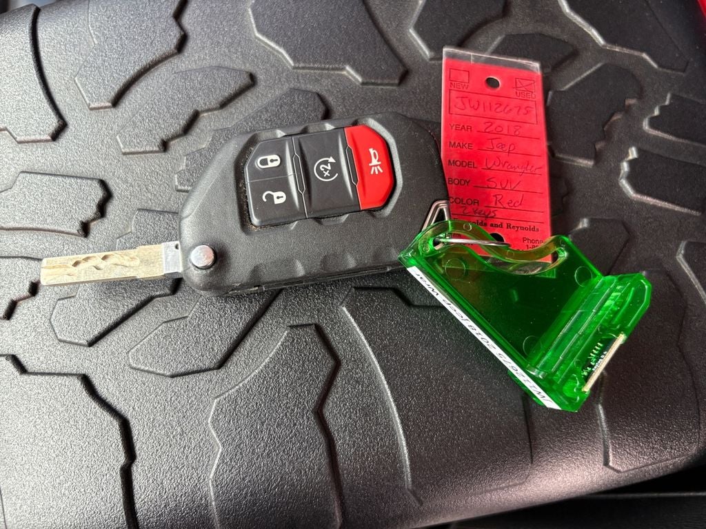 This vehicle comes equipped with Android Auto for seamless smartphone integration on the road. Never get into a cold vehicle again with the remote start feature on the Jeep Wrangler. Apple CarPlay: Seamless smartphone integration for this unit - stay connected and entertained on the go! Protect the vehicle from unwanted accidents with a cutting edge backup camera system. The leather seats in this 2018 Jeep Wrangler are a must for buyers looking for comfort, durability, and style. The vehicle keeps you comfortable with Auto Climate. It has a clean CARFAX vehicle history report. Bluetooth® technology is built into it, keeping your hands on the steering wheel and your focus on the road. This 2018 Jeep Wrangler gleams with a flashy red exterior. This Jeep Wrangler has four wheel drive capabilities. Quickly unlock this mid-size suv with keyless entry. Set the temperature exactly where you are most comfortable in this model. The fan speed and temperature will automatically adjust to maintain your preferred zone climate.