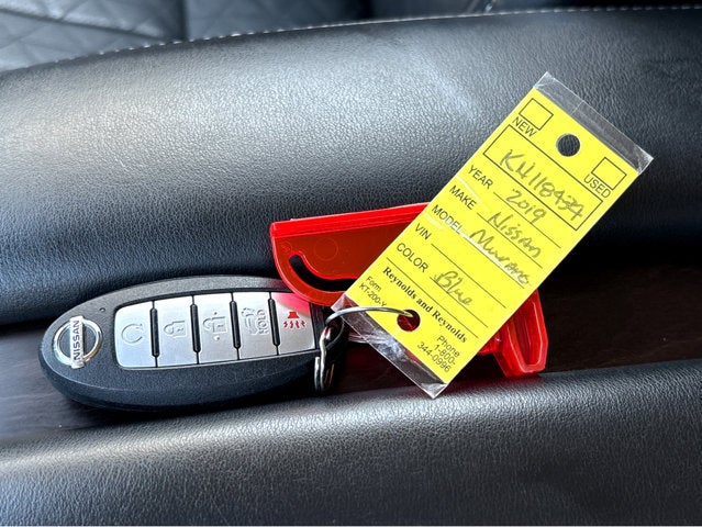 Vaden is pleased to offer this Deep Blue Pearl 2019 Nissan Murano Platinum with Graphite Leather... Beautifully equipped with CVT with Xtronic, AWD, 11 Speakers, 4-Wheel Disc Brakes, 4.667 Axle Ratio, ABS brakes, Air Conditioning, Alloy wheels, AM/FM radio: SiriusXM, AM/FM/CD/MP3/WMA Audio System, Auto High-beam Headlights, Auto tilt-away steering wheel, Auto-dimming Rear-View mirror, Automatic temperature control, Blind Spot Warning, Brake assist, Bumpers: body-color, Carpeted Floor Mats & Carpeted Cargo Mat, CD player, Child-Seat-Sensing Airbag, Climate-Controlled Front Bucket Seats, Compass, Delay-off headlights, Driver door bin, Driver vanity mirror, Dual front impact airbags, Dual front side impact airbags, Electronic Stability Control, Emergency communication system: NissanConnect Services, Four wheel independent suspension, Front anti-roll bar, Front Bucket Seats, Front Center Armrest, Front dual zone A/C, Front fog lights, Front reading lights, Fully automatic headlights, Garage door transmitter: HomeLink, Heated door mirrors, Heated front seats, Heated rear seats, Heated steering wheel, Illuminated entry, Knee airbag, Low tire pressure warning, Memory seat, Navigation system: NissanConnect Navigation, NissanConnect featuring Apple CarPlay and Android Auto, NissanConnect Services Powered By SiriusXM, Occupant sensing airbag, Outside temperature display, Overhead airbag, Overhead console, Panic alarm, Passenger door bin, Passenger vanity mirror, Power door mirrors, Power driver seat, Power Liftgate, Power moonroof, Power passenger seat, Power steering, Power windows, Radio data system, Rear anti-roll bar, Rear reading lights, Rear seat center armrest, Rear side impact airbag, Rear window defroster, Rear window wiper, Remote keyless entry, Roof rack: rails only, Security system, Semi-Aniline Leather-Appointed Seat Trim, Speed control, Speed-sensing steering, Speed-Sensitive Wipers, Split folding rear seat, Spoiler, Steering wheel memory, Steering wheel mounted audio controls, Tachometer, Telescoping steering wheel, Tilt steering wheel, Traction control, Trip computer, Turn signal indicator mirrors, Variably intermittent wipers, Ventilated front seats, and Wheels: 20" Dark Hyper Silver! ***Advertised price expires daily, subject to availability. Accessories and aftermarket products might change the advertised price. Pricing includes a $1000 discount for dealership arranged financing AND $1000 Trade-In Assistance, subject to credit approval! Residency restrictions do apply*** POWER PACKAGE ., POWER MIRROR PACKAGE, CVT with Xtronic, AWD.