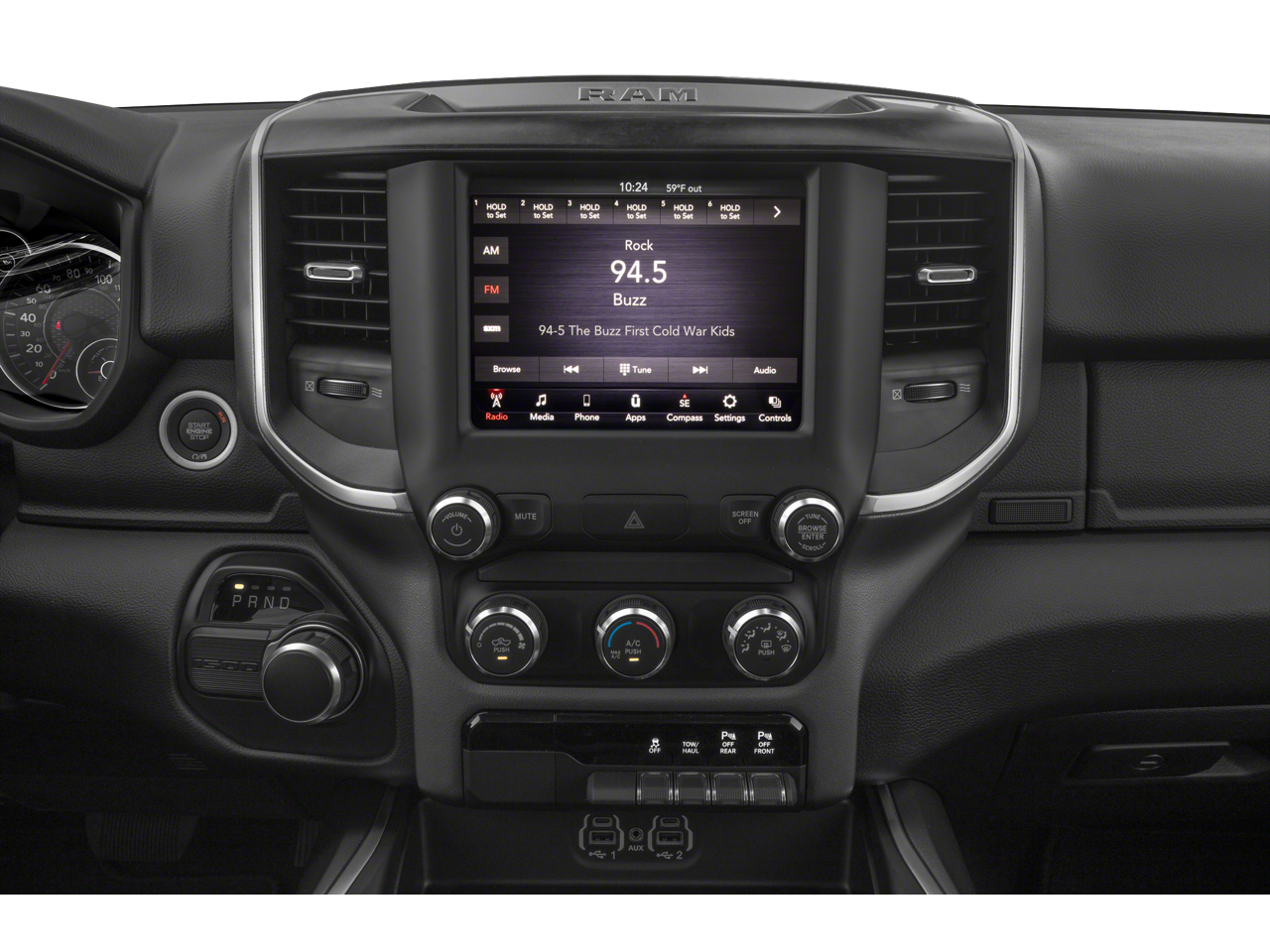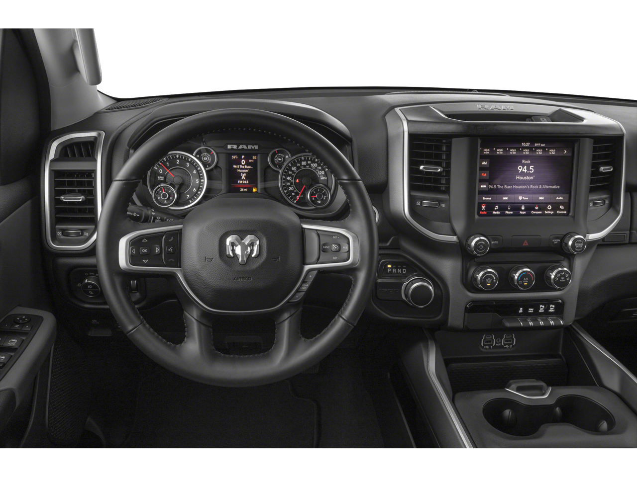 Quick Order Package 23Z Big Horn: Big Horn Badge. Big Horn Level 2 Equipment Group: Uconnect 4 Radio with 8.4" Display; Rear Window Defroster; ParkSense Front/rear Park Assist with Stop; Rear View Auto Dim Mirror; Power Adjustable Pedals; Rear Power Sliding Window; Rear Dome with On/off Switch Lamp; Glove Box Lamp; Power 4-Way Driver Lumbar Adjust; 115V Auxiliary Rear Power Outlet; Power 8-Way Driver Seat; 2 USB Full Function/charge Only Media Hub; Heated Front Seats; Heated Steering Wheel; Foam Bottle Insert (door Trim Panel); Class IV Receiver Hitch; Dampened Tailgate; Security Alarm; Black Premium Power Mirrors; Big Horn Instrument Panel Badge; Remote Start System; SiriusXM Satellite Radio; 400W Inverter; Air Conditioning ATC with Dual Zone Control; 115V Auxiliary Power Outlet; Universal Garage Door Opener; 2nd Row in Floor Storage Bins; Sun Visors with Illuminated Vanity Mirrors. Protection Group: Steering Gear Skid Plate; Tow Hooks; Transfer Case Skid Plate; Front Suspension Skid Plate; Fuel Tank Skid Plate. Deluxe Cloth Bucket Seats. Blind Spot and Cross Path Detection. Anti-Spin Differential Rear Axle. ParkSense Front/rear Park Assist with Stop. 33 Gallon Fuel Tank. Remote Start System. Front and Rear Rubber Floor Mats. 115V Auxiliary Power Outlet. **Equipment listed is based on original vehicle build and subject to change. Please confirm the accuracy of the included equipment by calling the dealer prior to purchase.**