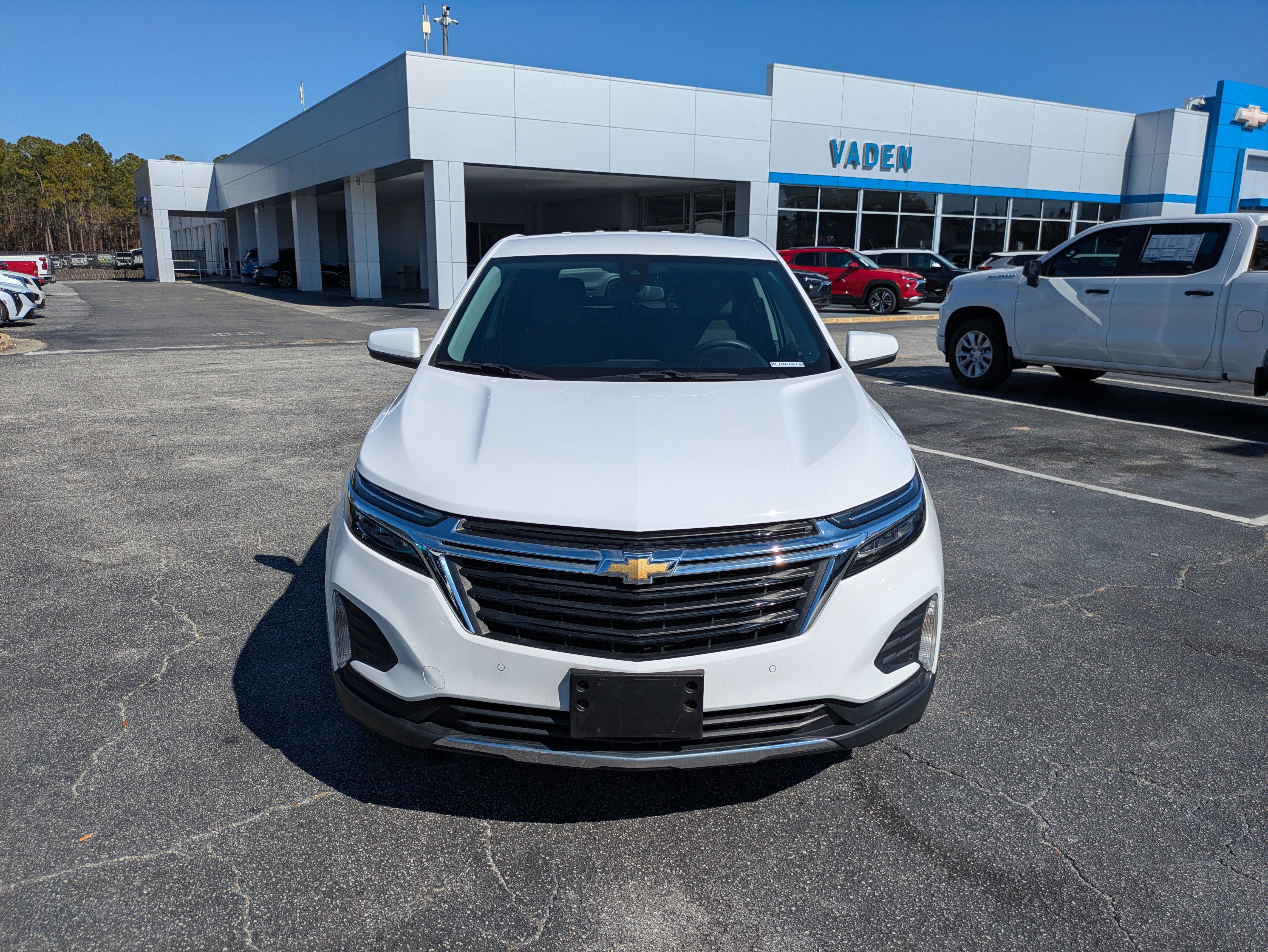 Vaden is pleased to offer this Summit White 2023 Chevrolet Equinox LT with Jet Black Cloth... Beautifully equipped with Confidence & Convenience Package, Driver Confidence II Package (Front & Rear Park Assist), Driver Convenience Package (Dual-Zone Automatic Climate Control, Heated Driver & Front Passenger Seats, Rear Power Liftgate, Remote Start, and Wrapped Steering Wheel), Preferred Equipment Group 1LT, 17" Aluminum Wheels, 2 Rear USB Charging-Only Ports, 2 USB Ports & Auxiliary Input Jack, 2-Way Power Driver Lumbar Control Seat Adjuster, 3.50 Final Drive Axle Ratio, 4-Wheel Disc Brakes, 6 Speakers, 6-Speaker Audio System Feature, ABS brakes, Air Conditioning, Alloy wheels, AM/FM radio: SiriusXM, Auto High-beam Headlights, Bluetooth® For Phone, Brake assist, Bumpers: body-color, Compass, Delay-off headlights, Driver 8-Way Power Seat Adjuster, Driver door bin, Driver vanity mirror, Dual front impact airbags, Dual front side impact airbags, Electronic Stability Control, Emergency communication system: OnStar and Chevrolet connected services capable, Four wheel independent suspension, Front anti-roll bar, Front Bucket Seats, Front Center Armrest, Front Passenger 4-Way Manual Seat Adjuster, Front reading lights, Fully automatic headlights, Heated door mirrors, Illuminated entry, Low tire pressure warning, Occupant sensing airbag, Outside temperature display, Overhead airbag, Overhead console, Panic alarm, Passenger door bin, Passenger vanity mirror, Power door mirrors, Power driver seat, Power steering, Power windows, Premium audio system: Chevrolet Infotainment 3, Premium Cloth Seat Trim, Radio data system, Radio: Chevrolet Infotainment 3 System w/AM/FM, Rear anti-roll bar, Rear reading lights, Rear seat center armrest, Rear window defroster, Rear window wiper, Remote keyless entry, Security system, SiriusXM Radio, Speed control, Speed-sensing steering, Split folding rear seat, Spoiler, Steering wheel mounted audio controls, Tachometer, Telescoping steering wheel, Tilt steering wheel, Traction control, Trip computer, Variably intermittent wipers, and Wireless Apple CarPlay/Wireless Android Auto! Approved customer communicated additions (repairing minor cosmetic flaw, added accessories, etc.) Prior to delivery will be subject to additional charges. ***All of Our Vaden New Car Pricing is Transparent, the price you see is the price you pay!!**** CAR FAX 1 OWNER, Bluetooth®/HANDS FREE PHONE, CLEAN CARFAX, SIRIUS XM SATELLITE RADIO, POWER PACKAGE, BACKUP CAMERA, PREMIUM WHEELS.
