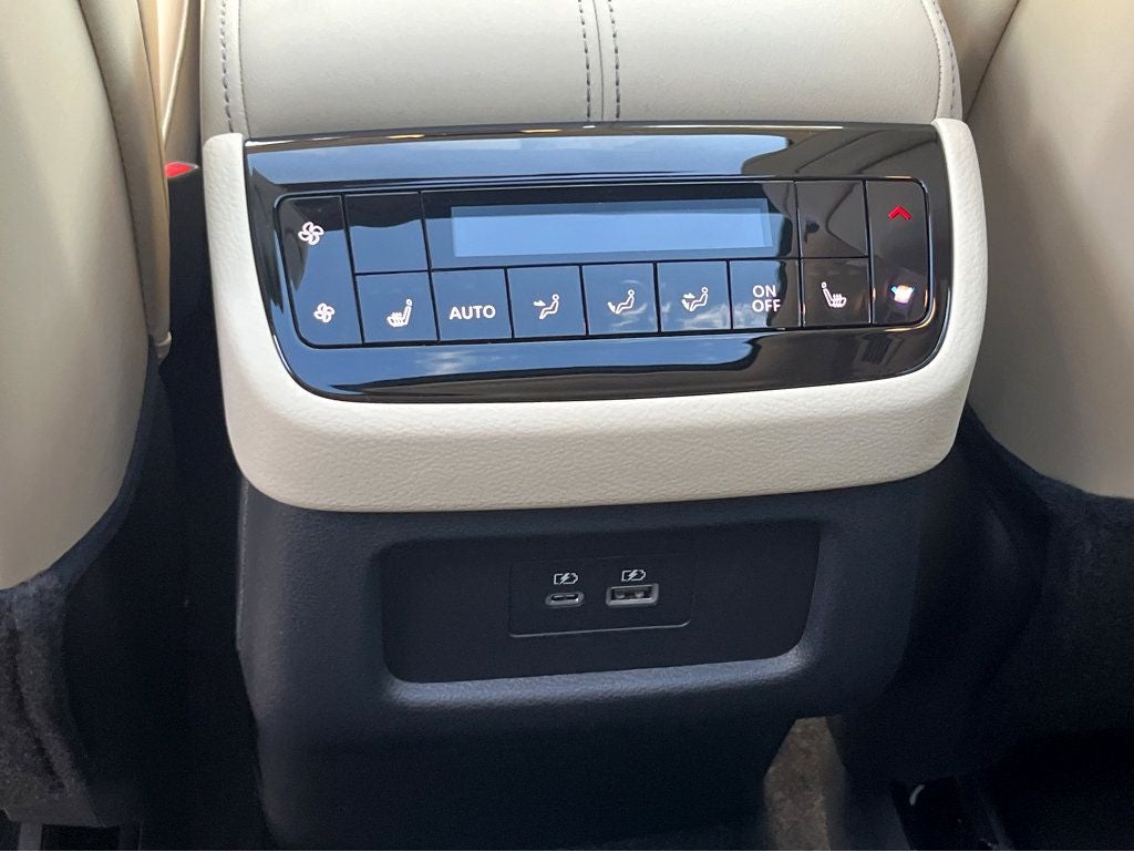 Vaden is pleased to offer 2025 INFINITI QX60 LUXE in Warm Titanium, Beautifully equipped with all the essentials and then some! Cargo Package (Cargo Mat (Reversible), Cargo Net, and First Aid Kit), 17 Speakers, 3rd row seats: bench, 4-Wheel Disc Brakes, ABS brakes, Air Conditioning, Alloy wheels, AM/FM radio: SiriusXM, Anti-whiplash front head restraints, Apple CarPlay/Android Auto, Auto High-beam Headlights, Auto tilt-away steering wheel, Auto-dimming door mirrors, Auto-dimming Rear-View mirror, Automatic temperature control, Bose Performance Series 17-Speaker Sound System, Brake assist, Bumpers: body-color, Climate Controlled Front Bucket Seats, Delay-off headlights, Driver door bin, Driver vanity mirror, Dual front impact airbags, Dual front side impact airbags, Electronic Stability Control, Emergency communication system: INFINITI InTouch, Exterior Parking Camera Rear, Floor Mats w/Bench Seats on 3rd Row Tray, Four wheel independent suspension, Front anti-roll bar, Front Bucket Seats, Front Center Armrest, Front dual zone A/C, Front reading lights, Fully automatic headlights, Garage door transmitter: HomeLink, Heated door mirrors, Heated front seats, Heated rear seats, Heated steering wheel, Illuminated entry, Knee airbag, Leather Shift Knob, Leather steering wheel, Leather-Appointed Seating Surfaces, Literature Kit, Low tire pressure warning, Memory seat, Navigation system: INFINITI InTouch Navigation, Occupant sensing airbag, Outside temperature display, Overhead airbag, Overhead console, Panic alarm, Passenger door bin, Passenger vanity mirror, Power door mirrors, Power driver seat, Power Liftgate, Power moonroof, Power passenger seat, Power steering, Power windows, Premium Paint, Radiant Grille Emblem, Radio data system, Radio: Bose Performance Series, Rain sensing wipers, Rear air conditioning, Rear anti-roll bar, Rear reading lights, Rear seat center armrest, Rear side impact airbag, Rear window defroster, Rear window wiper, Reclining 3rd row seat, Remote keyless entry, Security system, Silver Cross Bar, Speed control, Speed-sensing steering, Speed-Sensitive Wipers, Splash Guards, Split folding rear seat, Spoiler, Steering wheel memory, Steering wheel mounted audio controls, Tachometer, Telescoping steering wheel, Tilt steering wheel, Traction control, Trip computer, Turn signal indicator mirrors, Variably intermittent wipers, Ventilated front seats, and Wheels: 20 x 8J Sporty Machined Aluminum Alloy.