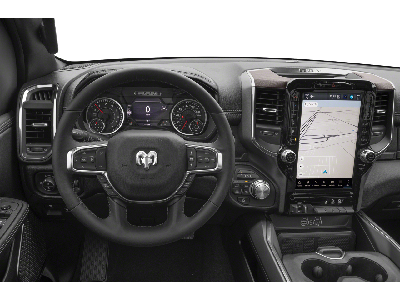 See what's behind you with the back up camera on this model. Apple CarPlay: Seamless smartphone integration for this 2025 Ram 1500 - stay connected and entertained on the go! This 2025 Ram 1500 offers Automatic Climate Control for personalized comfort. This Ram 1500 features a hands-free Bluetooth® phone system. The leather seats in this 2025 Ram 1500 are a must for buyers looking for comfort, durability, and style. You'll never again be lost in a crowded city or a country region with the navigation system on this Ram 1500. This unit is pure luxury with a heated steering wheel. The Ram 1500's Lane Departure Warning helps keep you in your lane. The state of the art park assist system will guide you easily into any spot. This vehicle is a certified CARFAX 1-owner. This model's Forward Collision Warning feature alerts drivers to potential front-end collisions. It has automated speed control that adjusts to maintain a safe following distance, enhancing highway driving convenience.